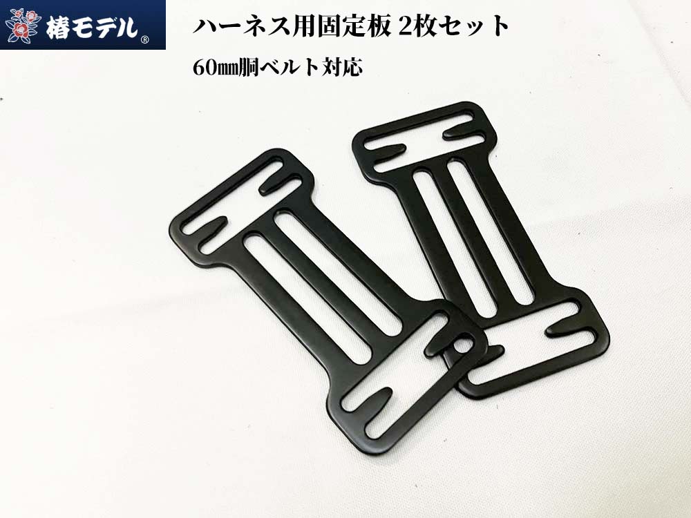 椿モデルハーネス用 胴ベルト固定板 ブラック 60㎜幅胴ベルト対応 2個入り